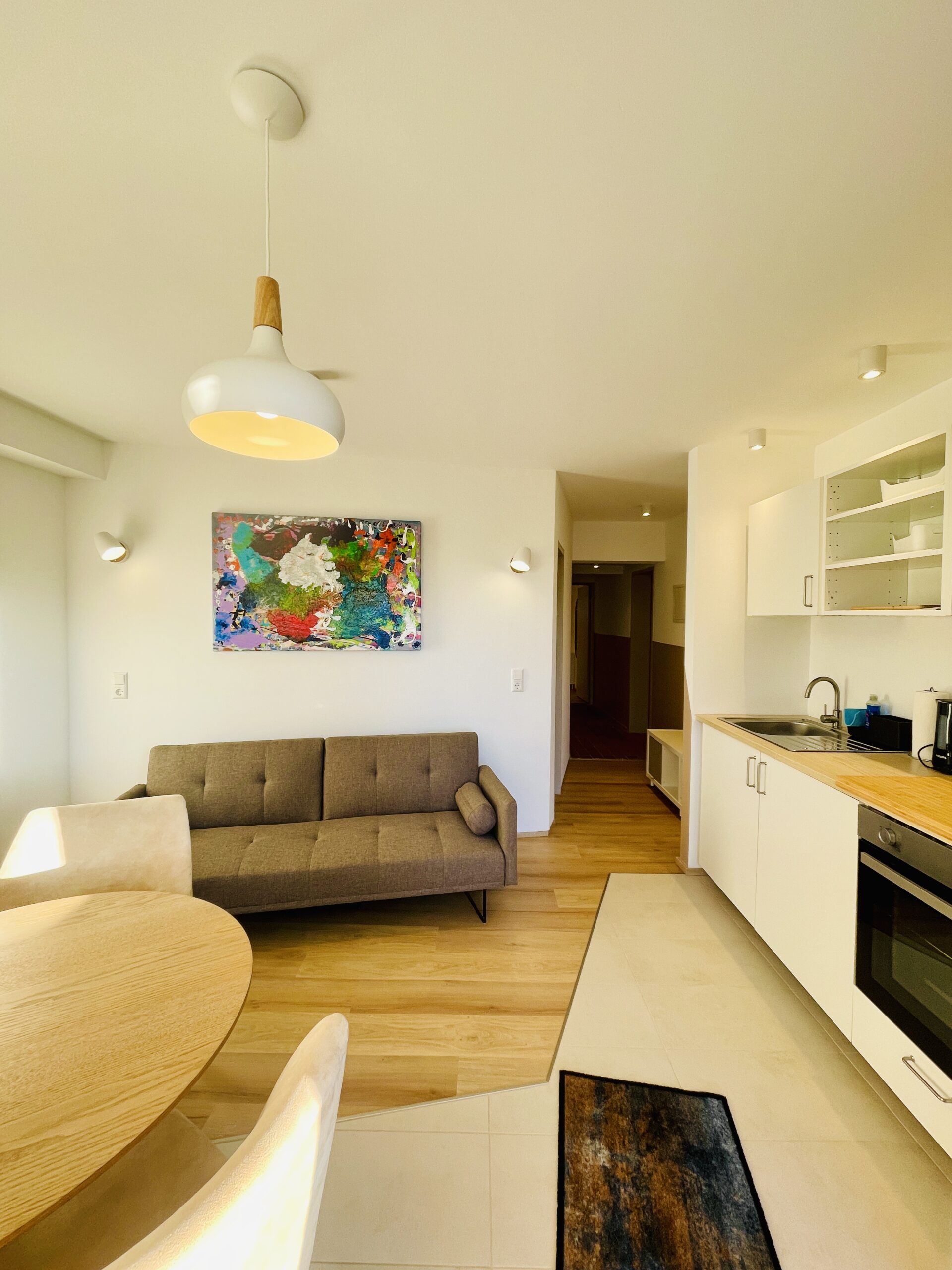 In diesem Apartment, mit seinem offenen Wohn- Essbereich Küche, Bad und zwei separate Schlafzimmern fühlt man sich (fast) wie zu Hause.